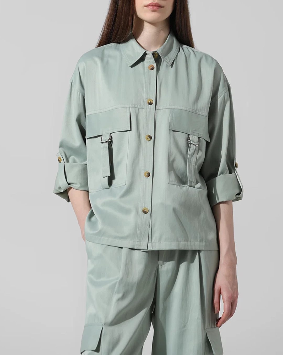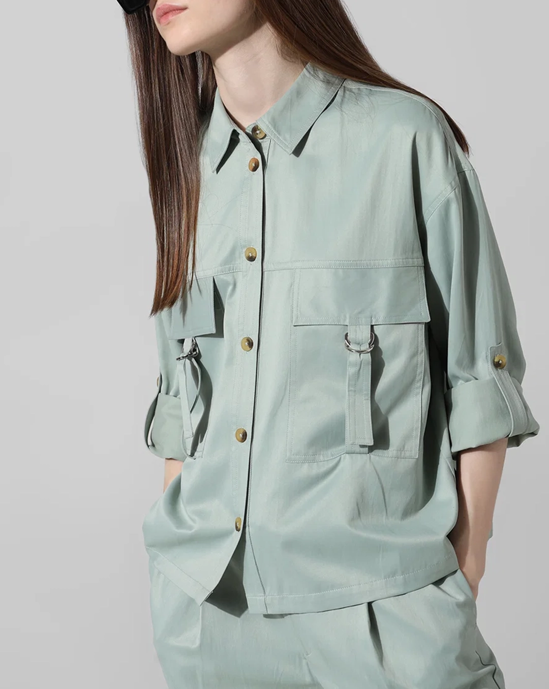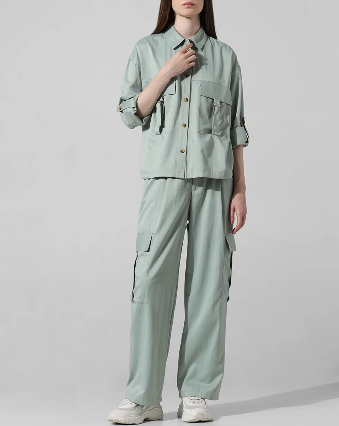 Brown Utility Loose Fit Co-ord Set Shirt 101527